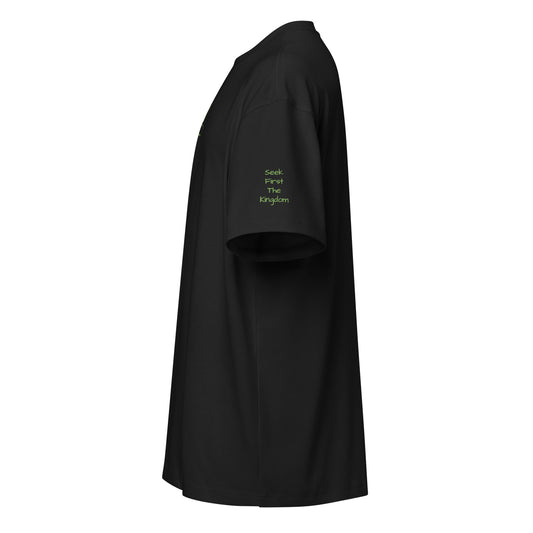 King Jesus Black on Black Unisex organic OVERSIZED (consider going down a size...fits big) high neck t-shirt